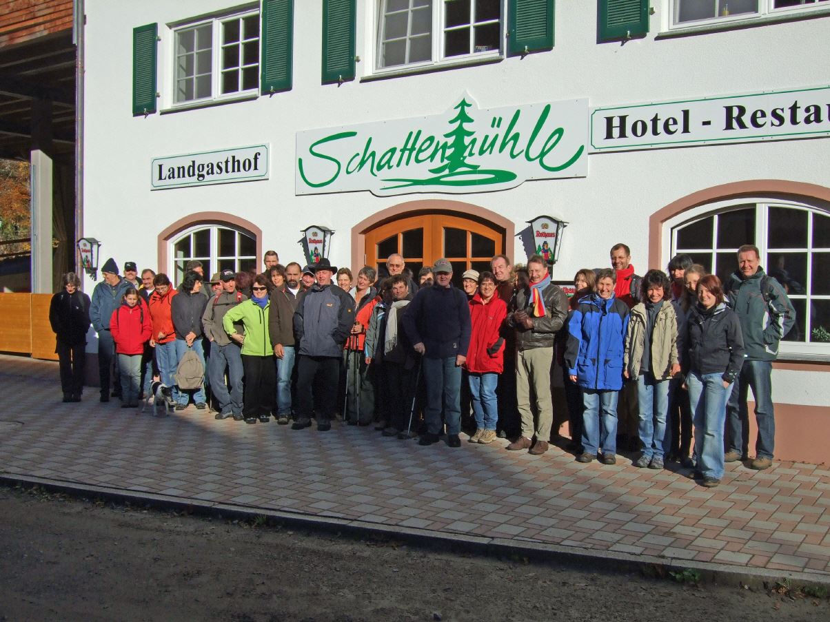 Die Fahrt führte in den Morgenstunden in Richtung Schwarzwald, in der Nähe von Donaueschingen begann an der Schattenmühle der Weg durch die Schlucht entlang der Wutach. Schnell wurde klar, dass Organisator Peter Jüngling eine anspruchsvolle, dafür aber umso schönere Strecke für die Wanderfreunde ausgesucht hatte. Zur landschaftlich überaus reizvollen Umgebung gesellte sich nun auch noch strahlender Sonnenschein, der ebenfalls zeitgerecht von Peter Jüngling organisiert wurde. Erfreulicherweise gab es unterwegs nur einen Ausfall zu registrieren, dies jedoch gleich nach 500 Metern der insgesamt zu bewältigenden 12,5 km. Aber auch da gab es relativ schnell Entwarnung. In der Wutachschlucht gab es für alle Teilnehmer viel zu entdecken. Hinter jeder Biegung erhob sich ein neues eindrucksvolles Panorama, welches zum Fotografieren einlud. So war es auch nicht verwunderlich, dass die Gruppe dann mit kleiner Verspätung, aber dafür mit großem Hunger im Gasthaus "Scheffellinde", benannt nach dem Literaten des 19. Jahrhunderts, Joseph Victor von Scheffel, eintraf. Bei herzhaften Speisen und auch Kaffee und Kuchen ließen die Wanderfreunde den Tag noch einmal Revue passieren. Am Abend erreichten dann wieder alle Teilnehmer nach der Rückfahrt mit dem Bus wohlbehalten Haslach. Hier geht es zur Bildergalerie