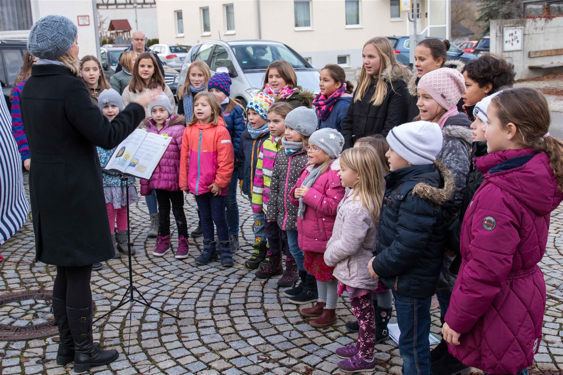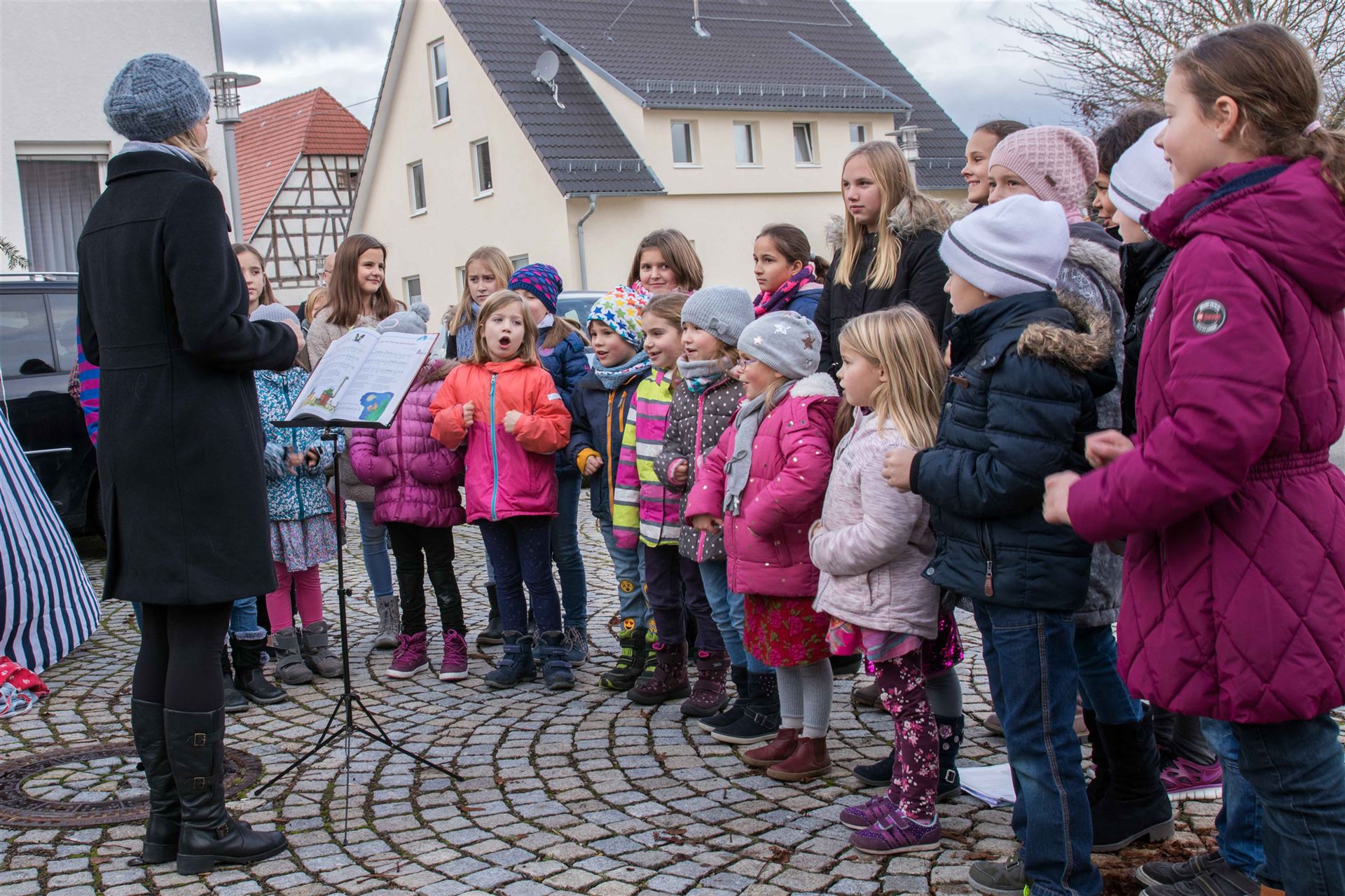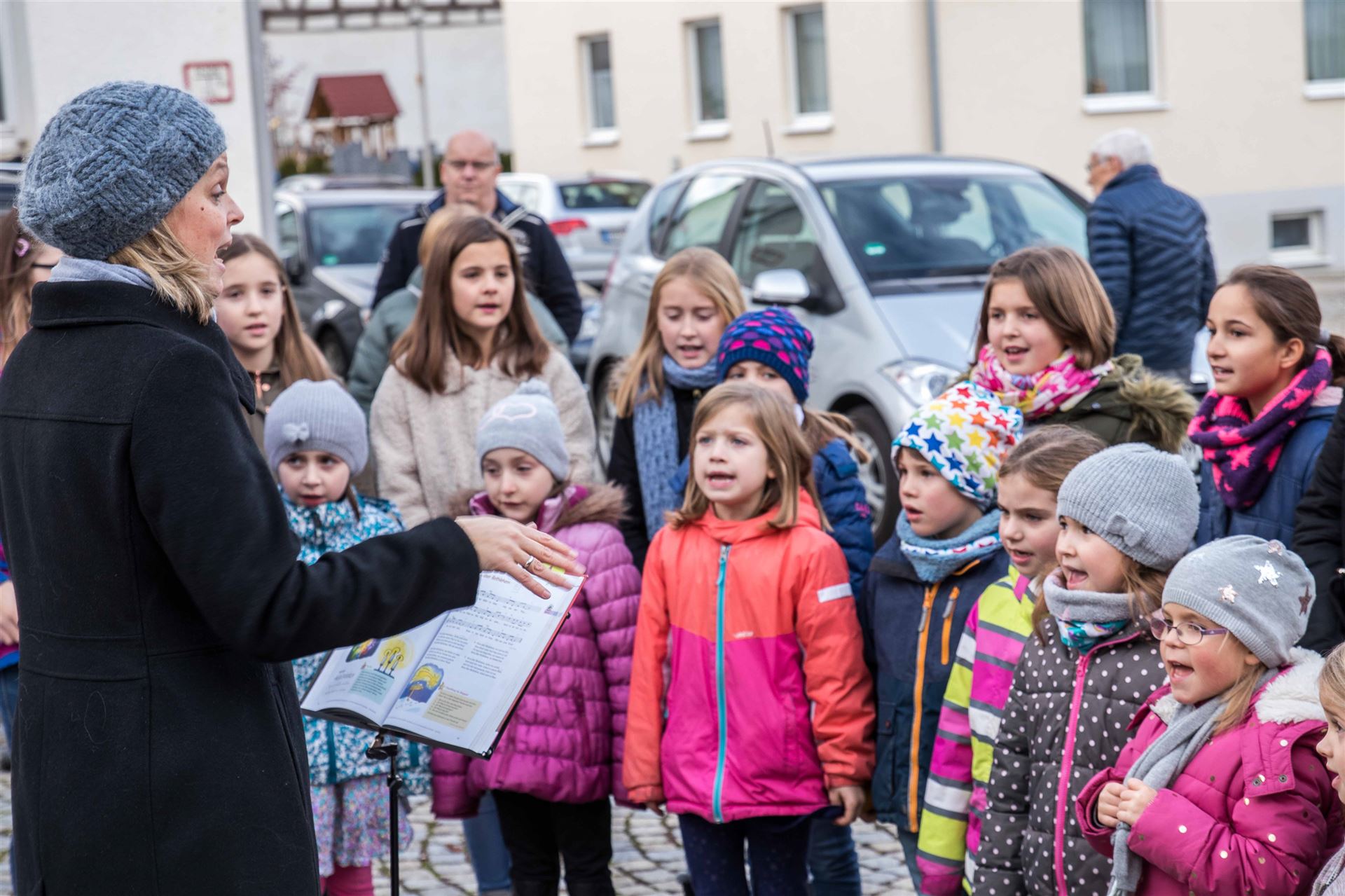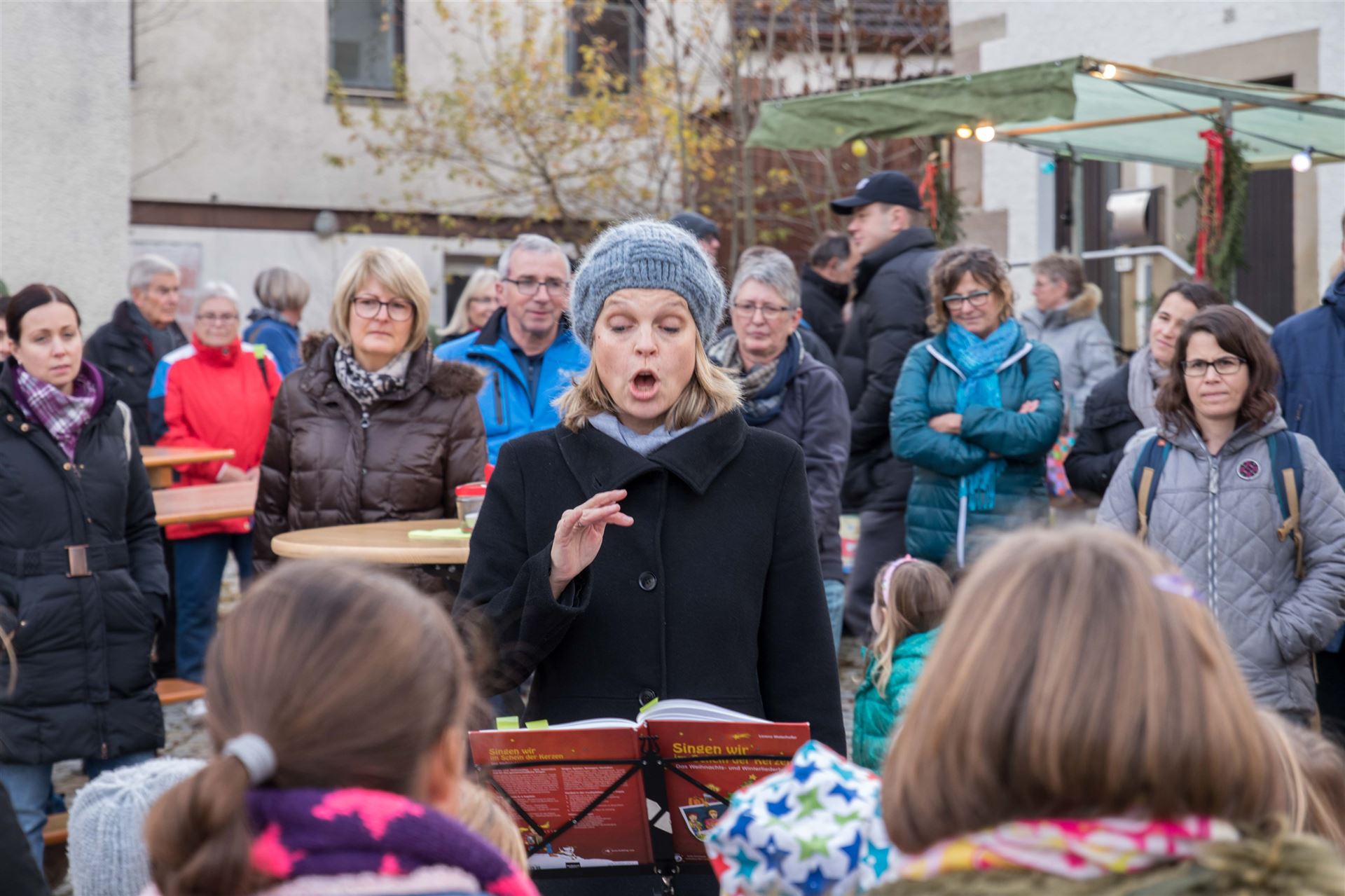 Zur Eröffnung der Veranstaltung sangen die "Chorrage-Kids" unter der Leitung von Astrid Andersson Weihnachtslieder. Danach startet der Brezelverkauf.