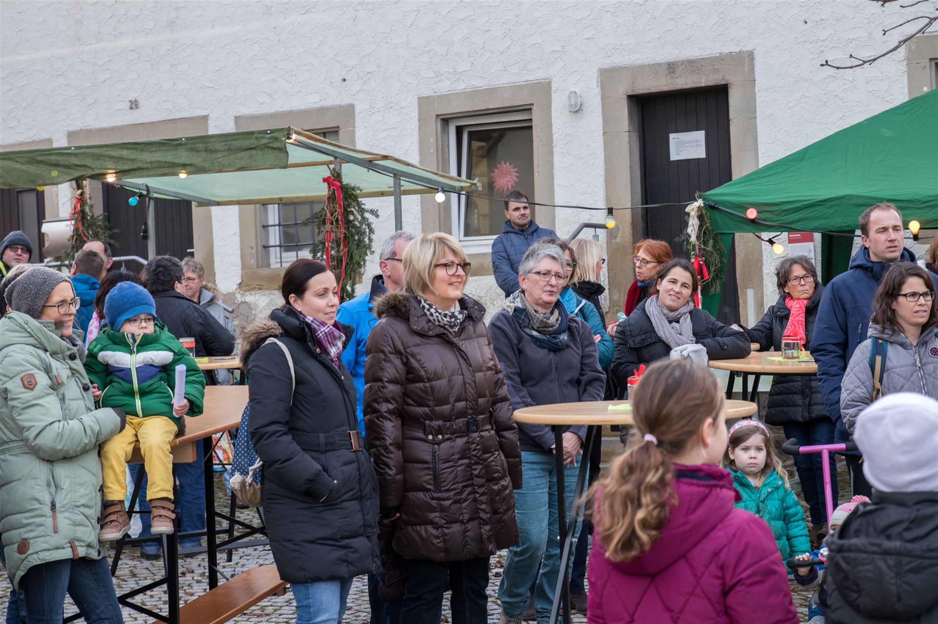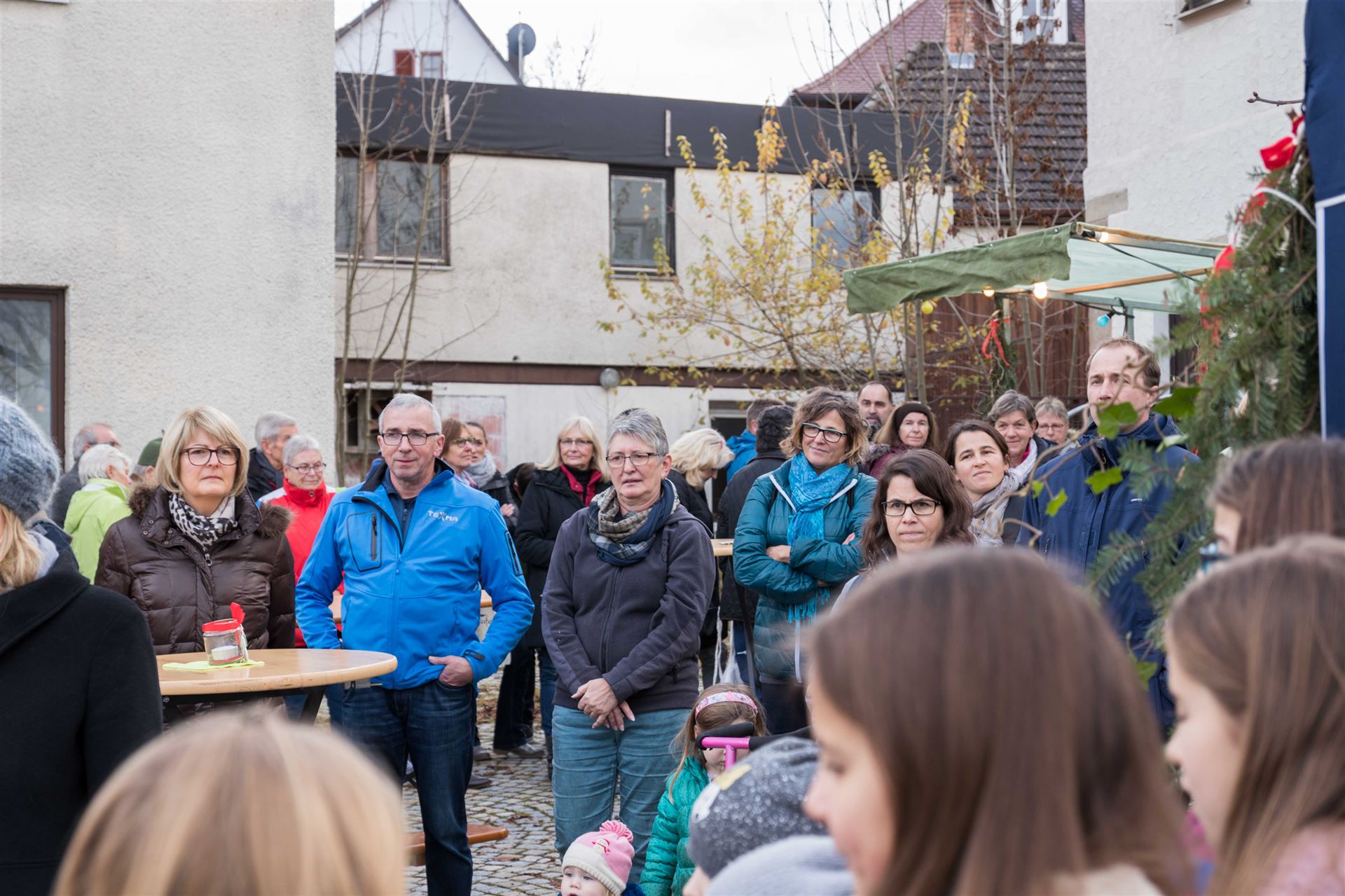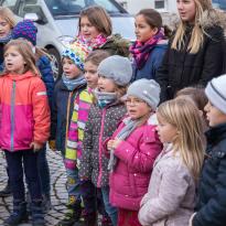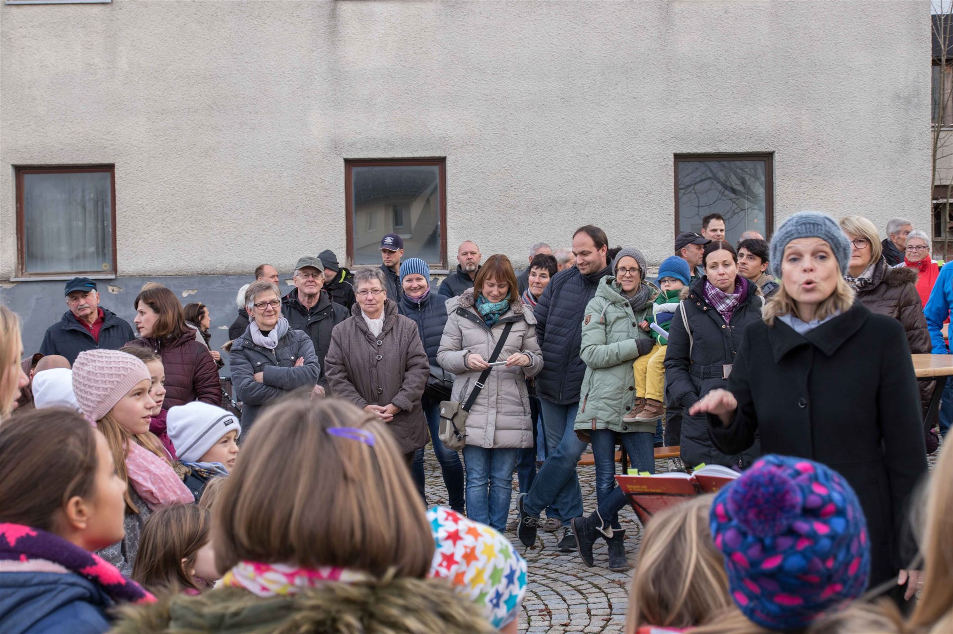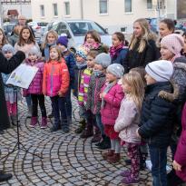 Zur Eröffnung der Veranstaltung sangen die "Chorrage-Kids" unter der Leitung von Astrid Andersson Weihnachtslieder. Danach startet der Brezelverkauf.