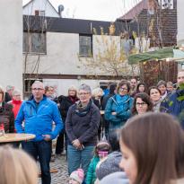 Obwohl bereits zu frühere Stunde die beiden Backofen angeheizt wurden und fleißige Hände Brezeln vorbereitet und gebacken haben, war das Vorratslage innerhalb kurzer Zeit leer. Zwei Öfen, jeweils ca. 15 Minuten Vorheizdauer je Backgang, dann maximal 12 Brezeln je Ofen und rund 15 Minuten Backzeit. Da war es leider unvermeidlich, dass Wartezeiten von rund einer Stunde eintraten. Trotzdem waren die Gäste überwiegend geduldig und freuten sich bei einem Becher Glühwein oder Punsch auf die leckere Backware. Ein Dankeschön hierfür.