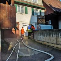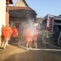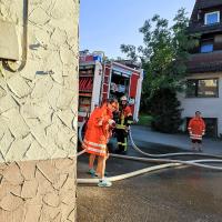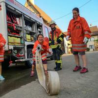 Die Revanche folgte eine Woche später, als am 05.06. der Funkspruch „Brand in Einfamilienhaus, Personen eingeschlossen“ einging und die erste Haslacher FFFW ( Freiwillige Frauenfeuerwehr) zur Übung ausrückte. Unter Anleitung von Kommandant Marc Heininger und Stellvertreter Tobias Olbrich konnte das Kommando „Florentine Haslach“ den Brandherd ausfindig machen und eine Person aus dem ersten Stock retten.