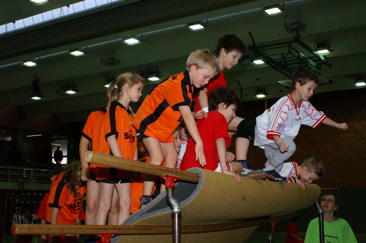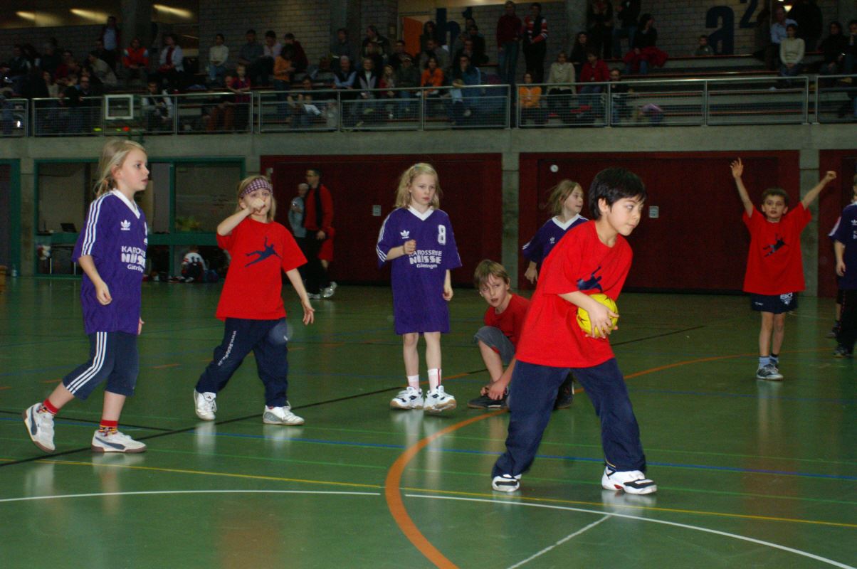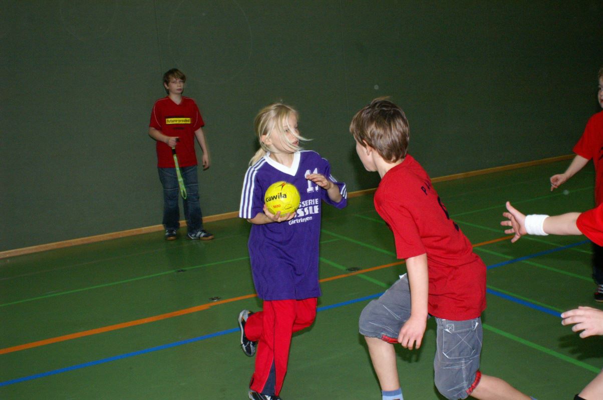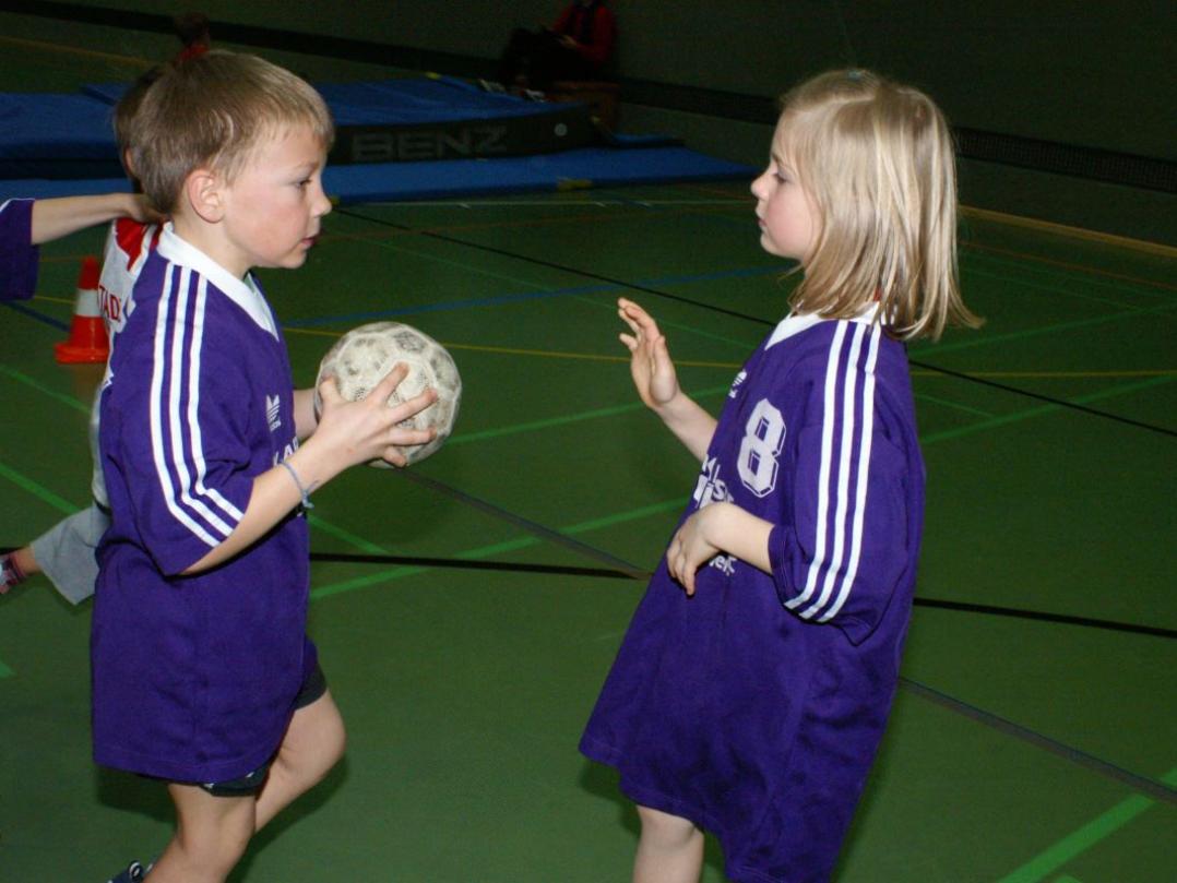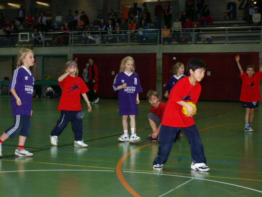 Bei den Aufsetzerballspielen konnten immer nur 4 Kinder aufs Feld, bei den Parteiballspielen 5 und bei den Handballspielen 6, und der Spielwille der auf der Bank unruhig Wartenden war riesengroß.
