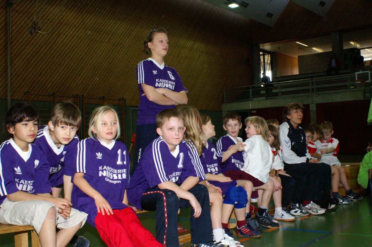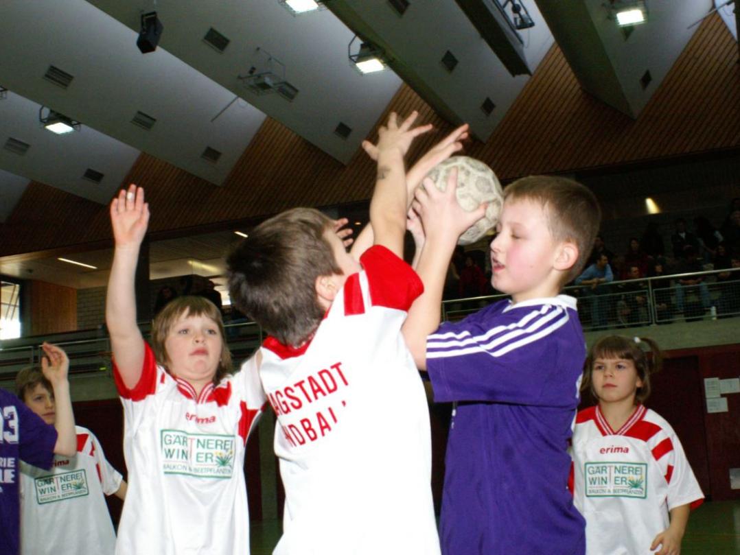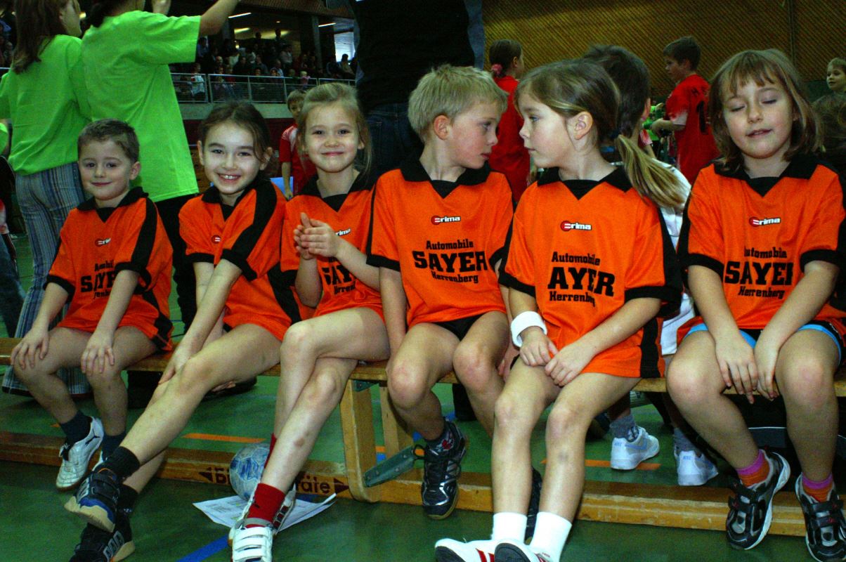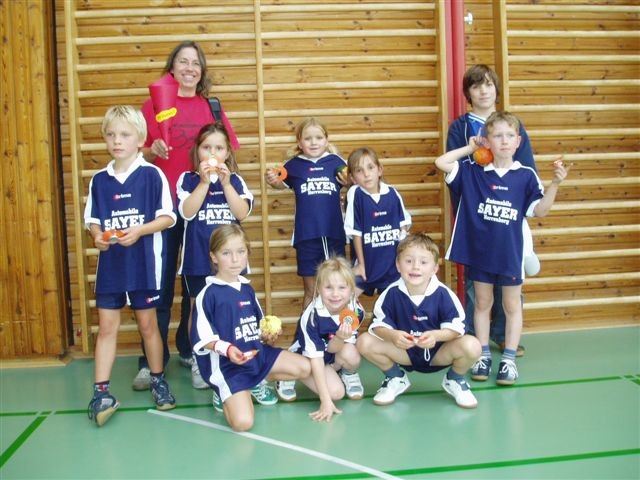 Für die Minis vom Jahrgang 2001 war es das erste Handballturnier überhaupt. Da die ersten drei Spiele gleich gegen 1 - 2 Jahre ältere und erfahrenere Handballer/innen bestritten werden mussten, gingen zwar alle drei Spiele verloren, doch war dies kein Grund, traurig zu sein: Ein Tor gelang immer und unsere Torwarte waren klasse! Das vierte Spiel gegen Gleichaltrige wurde mit 3:0 gewonnen und die Freude war grenzenlos!