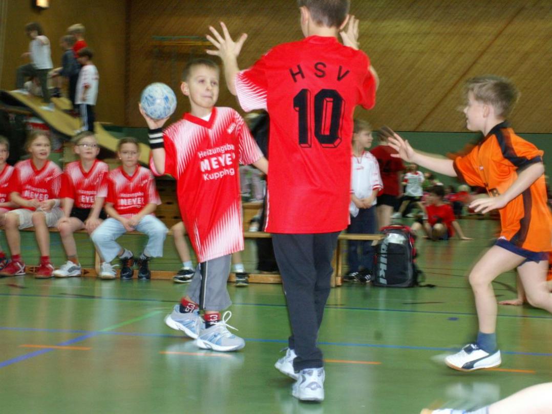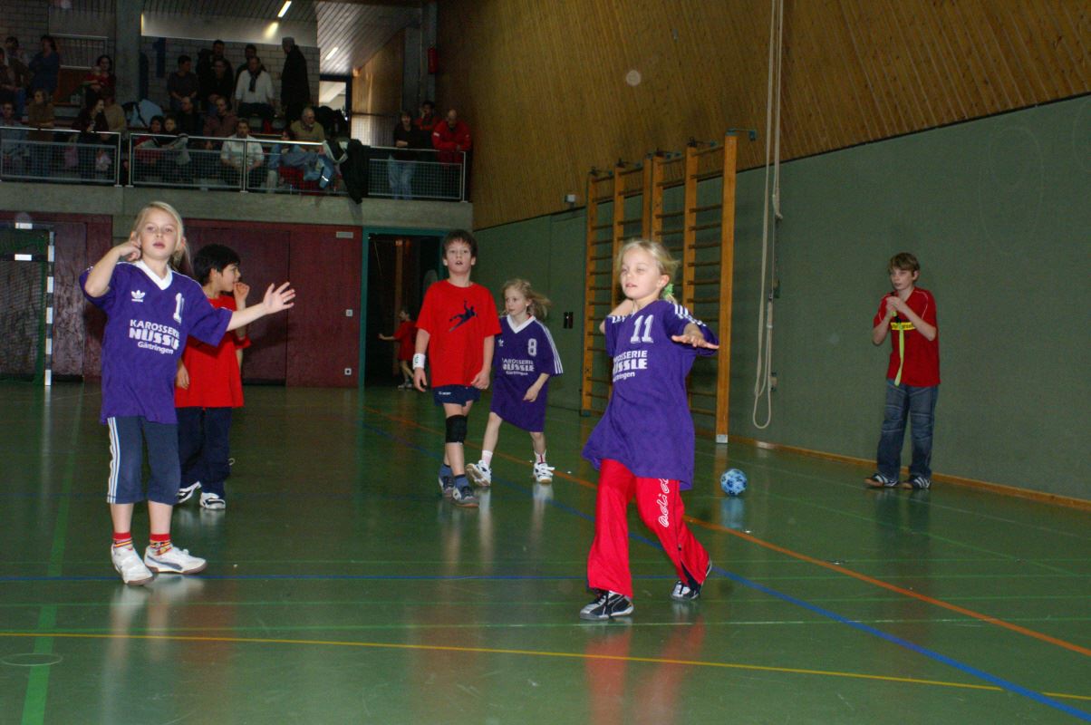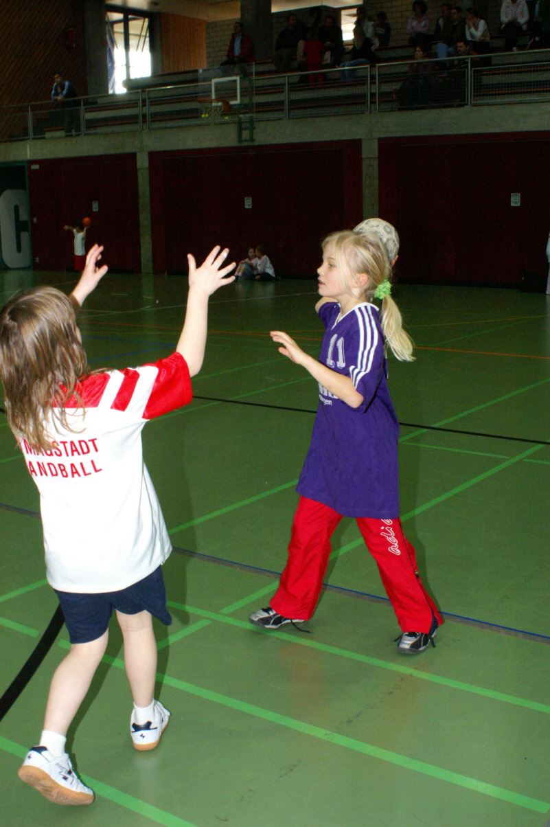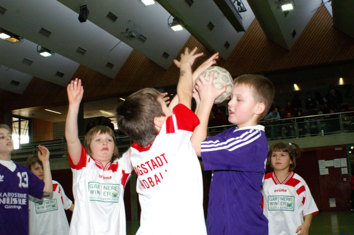 Für die Minis vom Jahrgang 2001 war es das erste Handballturnier überhaupt. Da die ersten drei Spiele gleich gegen 1 - 2 Jahre ältere und erfahrenere Handballer/innen bestritten werden mussten, gingen zwar alle drei Spiele verloren, doch war dies kein Grund, traurig zu sein: Ein Tor gelang immer und unsere Torwarte waren klasse! Das vierte Spiel gegen Gleichaltrige wurde mit 3:0 gewonnen und die Freude war grenzenlos!