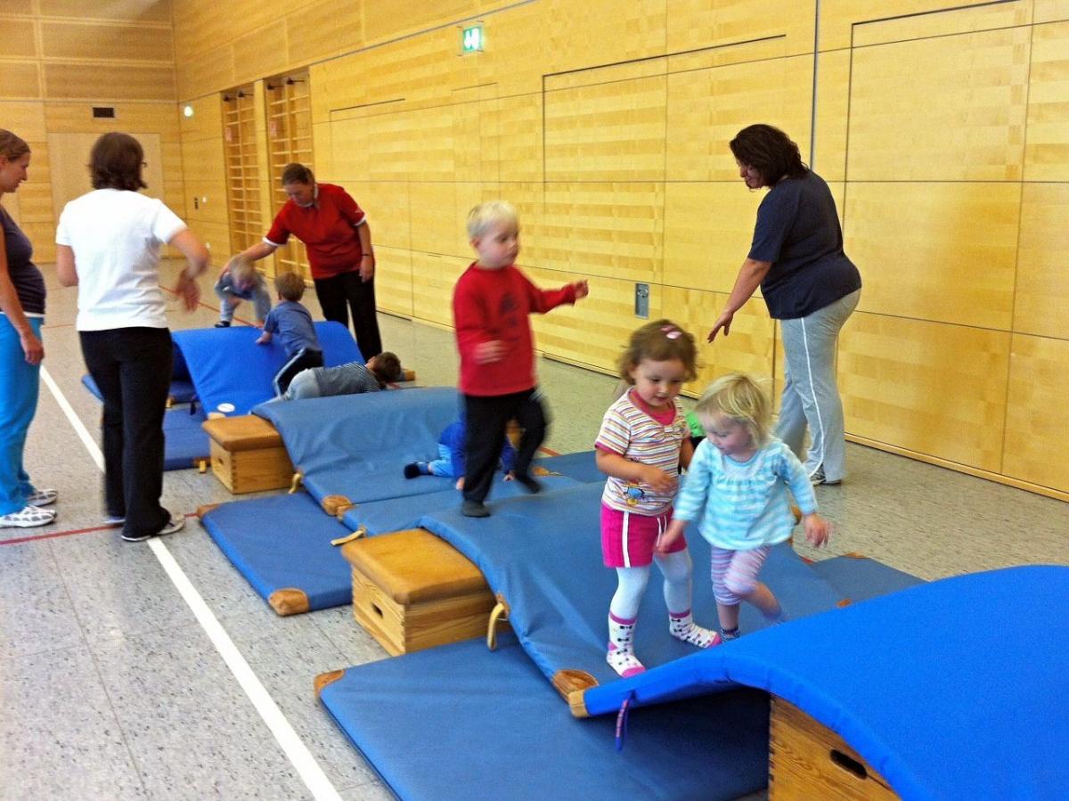 Im Eltern-Kind-Turnen und Kinderturnen wird dies mit Kindern ab dem Laufalter in spielerischen Übungen erlebt. So trainieren sie frühzeitig Motorik, Koordination und das Zusammensein mit anderen Kindern - und haben auch noch Spaß dabei.