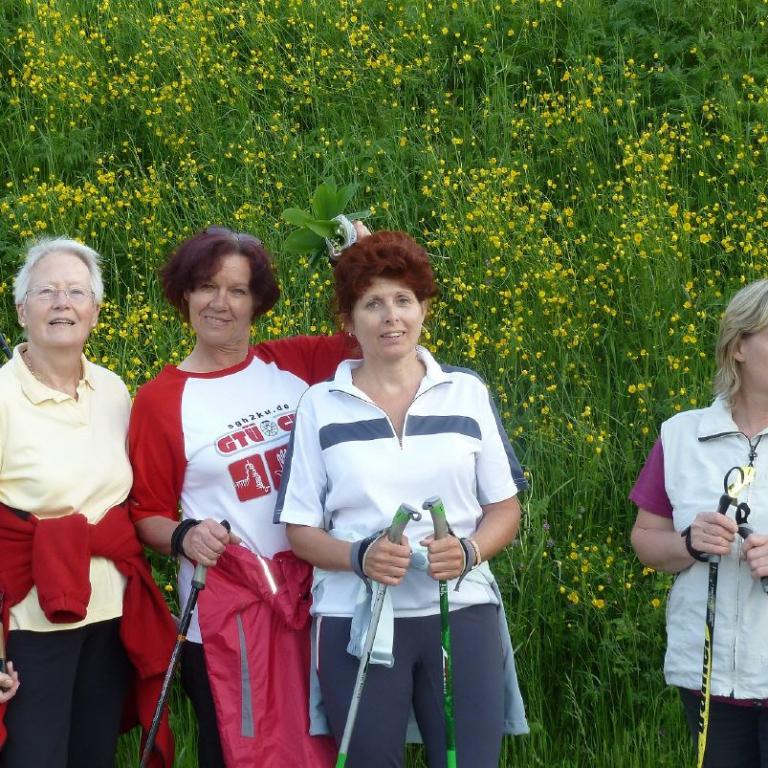 Seit 2003 ist die Nordic Walking Gruppe nun schon in Aktion. Keiner weiß, wie viele Kilometer sie inzwischen gemeinsam hinter sich gebracht haben, aber eines ist sicher: Viel Spaß haben sie immer, wenn sie losziehen! Egal, ob sie sich zum gemütlichen Walken durch Feld, Wald und Wiese treffen oder etwas flotter unterwegs sind.
